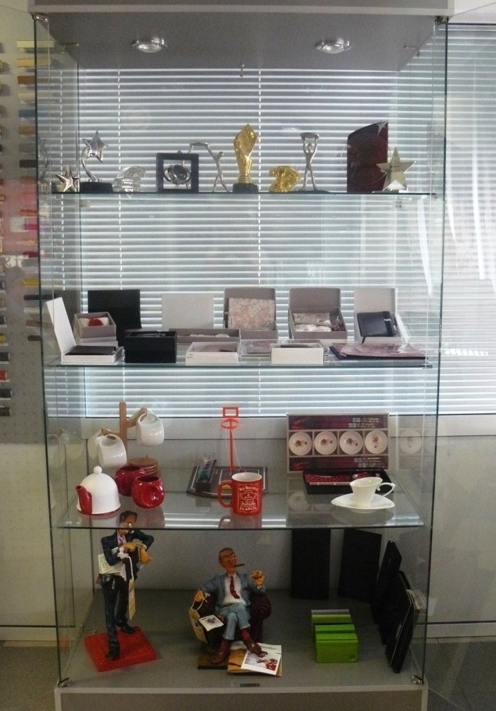 Теперь в нашем офисе вы сможете приобрести подарок и сразу сделать необходимое нанесение на него. Витрина с интересными, функциональными и просто приятными сувенирами, расположена в шоу-руме компании по адресу ул. Пограничников 44, стр. 2.