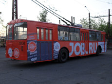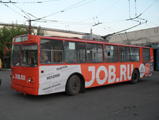 Компания «Ориентир-М» разместила рекламу ООО «Пронто - Новосибирск» (Job.ru), на бортах троллейбуса. Рекламная кампания направлена увеличение посещаемости сайта «Job.ru». «Job.ru» - ведущий российский ресурс для тех, кто ищет работу или занимается поиском квалифицированного персонала.
