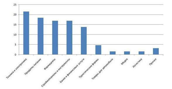 Состав рекламодателей в 2011 г. заметно расширился. Реклама на транспорте по объему бюджета стала приоритетным каналом для ритейла товарной категории «техника/электроника». Высокие темпы роста бюджетов можно отметить среди категорий «продукты питания». Возобновили активность финансовые структуры, впервые в топ рекламодателей вошли туристические операторы.