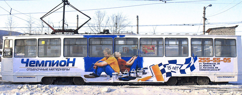 Транзитную рекламу на трамвае компания «Чемпион» совместила с сетевой рекламой в формате 6*3 на щитах «Ориентир-М».