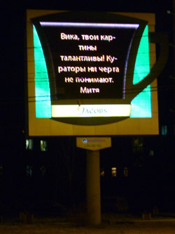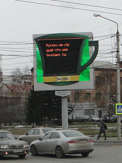 Возможности использования светодиодных экранов РА «Ориентир-М» поражают воображение, а сами экраны в очередной раз становятся объектом рекламного креатива. Хороший пример такого не стандартного использования экранов демонстрирует компания «Kraft Foods Rus», владелец торговой марки «Jacobs Monarch». В преддверии нового года в компании была разработана и спланирована акция «Согрейте близких теплом добрых слов»: уникальный способ выразить свои чувства тем, кто вам не безразличен. Основным рекламным носителем стали светодиодные экраны в 14 городах страны.