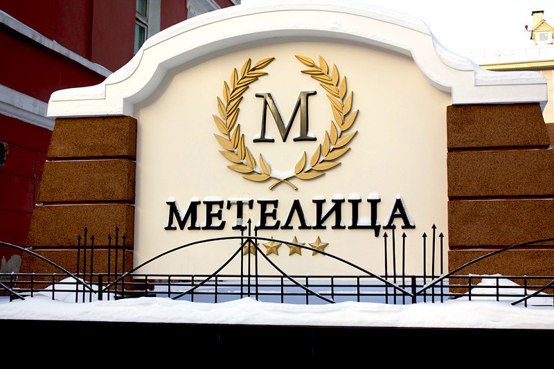 Вывески для фасада и стелы гостиницы «Метелица» были выполнены компанией «Ориентир-М» в соответствии с дизайн-проектом реконструкции здания. Буквы «Метелица» и элемент «Венок» изготовлены из трех слоев различно отфрезерованного и совмещенного пластика. Зачистка боковин осуществлялась вручную. Облик фасада получился очень стильным и элегантным за счет простоты и аккуратности рекламной конструкции.