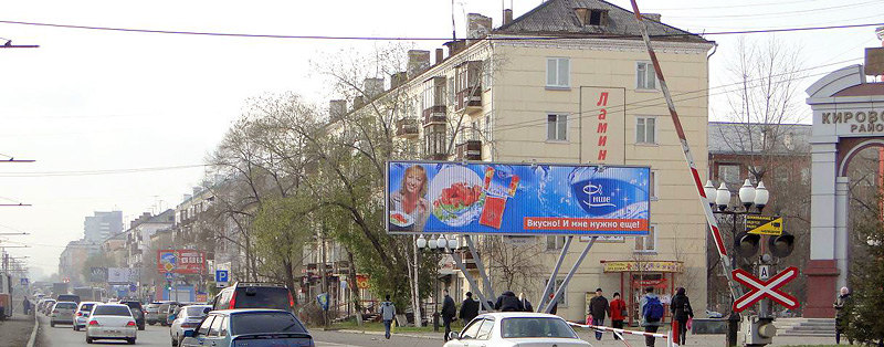 Для увеличения продаж своей продукции кроме статичных биллбордов по ключевым магистралям города был задействован нестандартный призматрон размером 12×3 м на пересечении двух районов города — Свердловского и Кировского на проспекте Красноярский рабочий.
