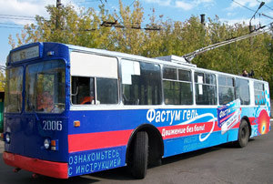 С середины сентября в нашем городе курсируют семь красочно оформленных троллейбусов с информационно-имиджевой рекламой медицинских препаратов: "Простамол Уно" и "Фастум Гель".
