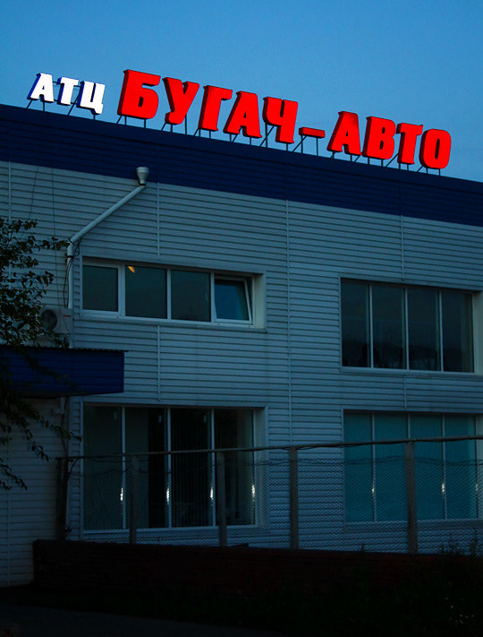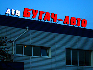 Яркая вывеска "Бугач" по технологии "световые объемные буквы" обращает на себя внимание и в темное, и в светлое время суток.