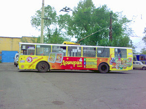 Компания ООО «Комплектор» откликнулась на предложение поместить информацию об всем известном продукте, лапше быстрого приготовления «Доширак». Теперь в Красноярске не останутся не замеченными 10 троллейбусов с яркой рекламой «Доширак».