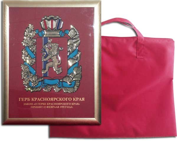 Компания «Ориентир-М» выиграла тендер, проводимый законодательным собранием края, на изготовление Гербов Красноярского Края. Первый экземпляр уже готов (герб и сумка).