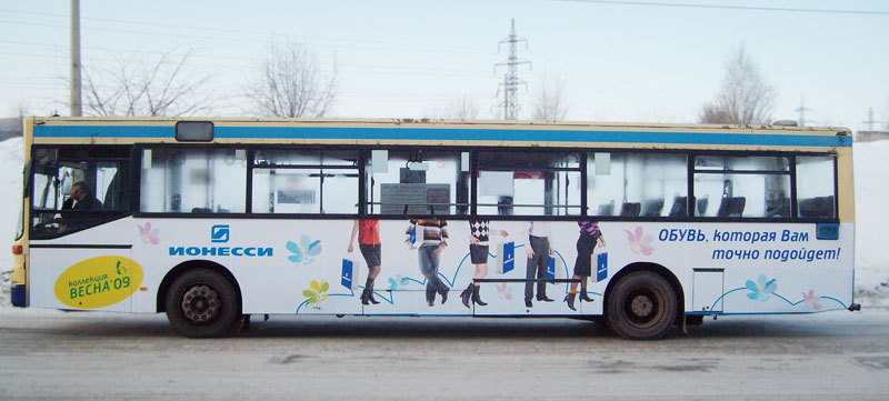 В марте компания «Ориентир-М» начала размещение рекламной кампании красноярской обувной фабрики «Ионесси» на бортах коммерческого транспорта. Критериями для выбора маршрутов стали протяженность и показатели GRP. Реклама весенней коллекции обуви отличается привлекательным и запоминающимся дизайном.