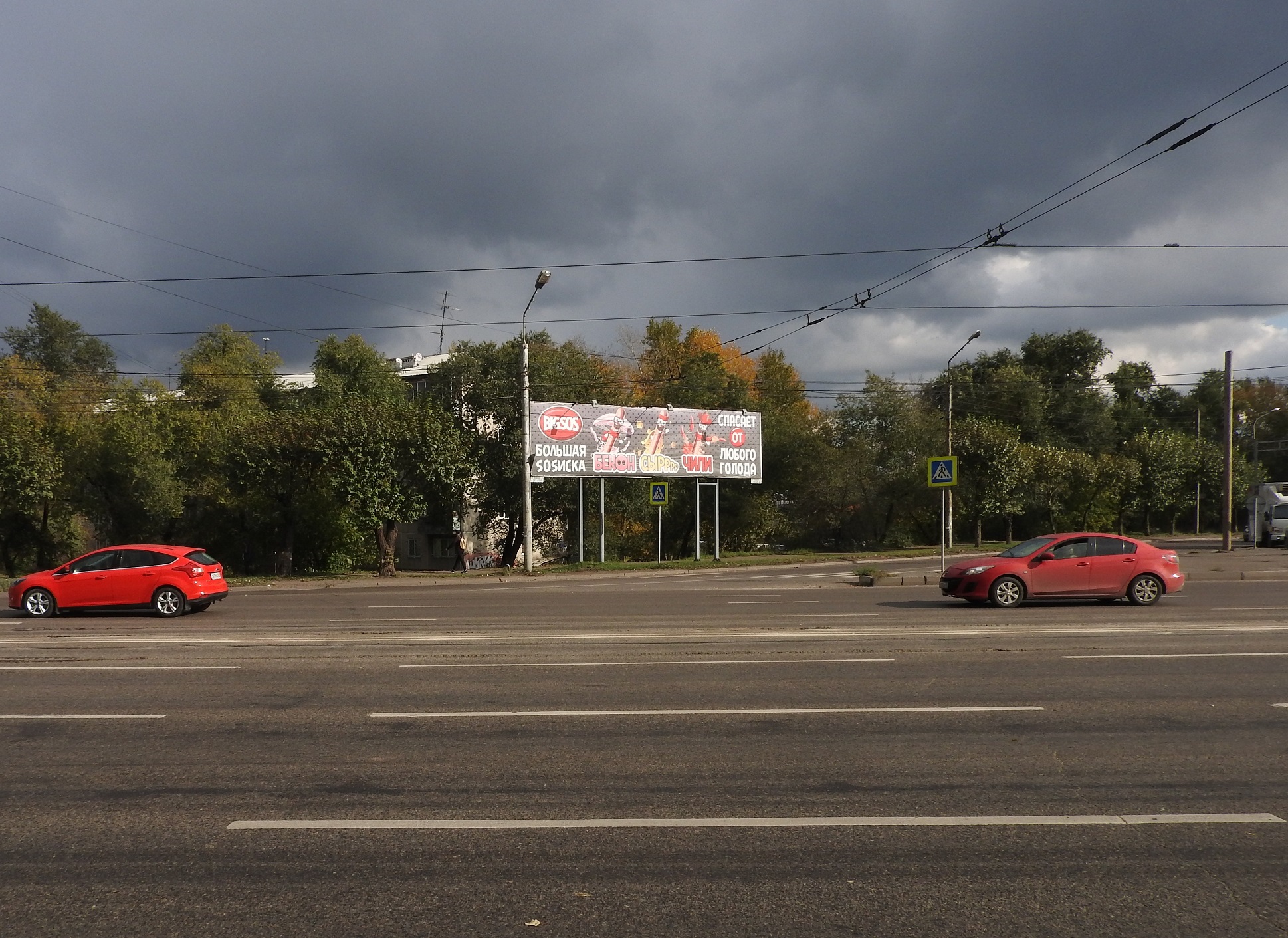 Конструкция 12х3м, расположенная на перекрестке улиц Матросова и Семафорная, идеально подошла для рекламы сосисок бренда BIGSOS со вкусом СЫРа, БЕКОНа и ЧИЛИ.