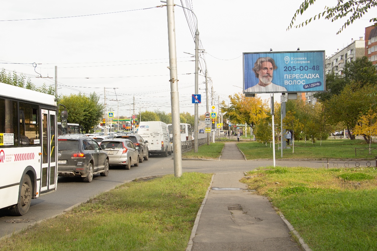 | Рекламная конструкция расположена на самом оживленном участке Советского района — ул. 9 Мая, при движении от ТЦ «Планета» в сторону микрорайона «Солнечный». Рядом с рекламной конструкцией расположены: торгово-офисный комплекс «Комсомольский», ЗАО «Банк ВТБ24», страховое общество «Надежда», сеть магазинов «КиК», юридические фирмы: «Адвокат», «Адвокат Пронин С. А.», торговый дом «Статус», магазин детских товаров «Rich Baby», кафе «Izumrud», стоматологические клиники, салоны красоты и др. | есть пешеходный переход, светофор 60 метров | Направление движения: сторона А -охватывает транспортный поток с ул. Водопьянова, ул. Урванцева, пр. Комсомольский. | Автовокзал находится примерно в 40 мин. езды. | Отсутствуют |
