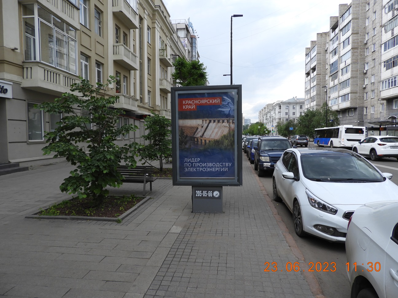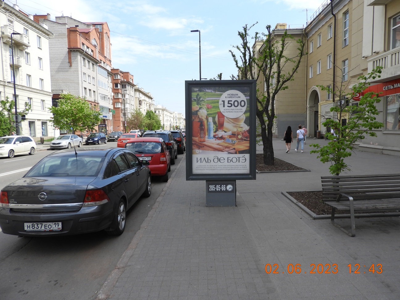 | Рекламная конструкция расположена в центре города, поэтому рядом очень много различных магазинов, таких как, «Собрание», «Sarah», салон мужской одежды «Giovanni Botticelli», «Е8», салон швейцарских часов «Geneva», салон оптики «Пенсне», ПАО Банк ВТБ 24, салоны красоты и др. Так же много всевозможных кафе и ресторанов. | есть остановка общественного транспорта на расстоянии 60 метров | Конструкция расположена возле перекрестка пр. Мира — ул. Робеспьра, охватывает направления движений с Копыловского моста по ул. Профсоюзов. Направление движения: сторона А — в сторону общественно-делового центра «Метрополь». | Автовокзал находятся примерно в 30 минутах езды, ж/д вокзал в 15 мин. | - |