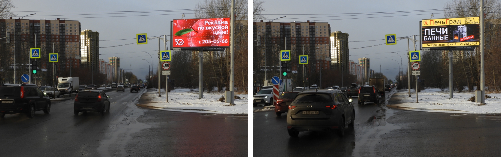 | Рекламная конструкция расположена в новом развивающемся и интенсивно расстраиваемом микрорайоне города. Конструкция расположена не далеко от кольцевой развязки, на оживленном участке дороги, охватывает направления движущиеся из Советского, Железнодорожного и Октябрьского районов города. | находится на расстоянии 50 метров | Направление движения: сторона А — охватывает направления движения с ул. 9 мая, ул. Шахтеров и ул. Петра Подзолкова в сторону Железнодорожного и Октябрьского районов. | - | Федеральный центр сердечно-сосудистой хирургии |